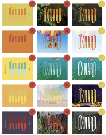 Use these versions when the logo is overlaid on a photo or background that can support the colors of “Oxnard”, but loses the colors, and therefore the visibility, of “VISIT” and “CA.” Please use discretion when doing this and default to the white reversed option when necessary.