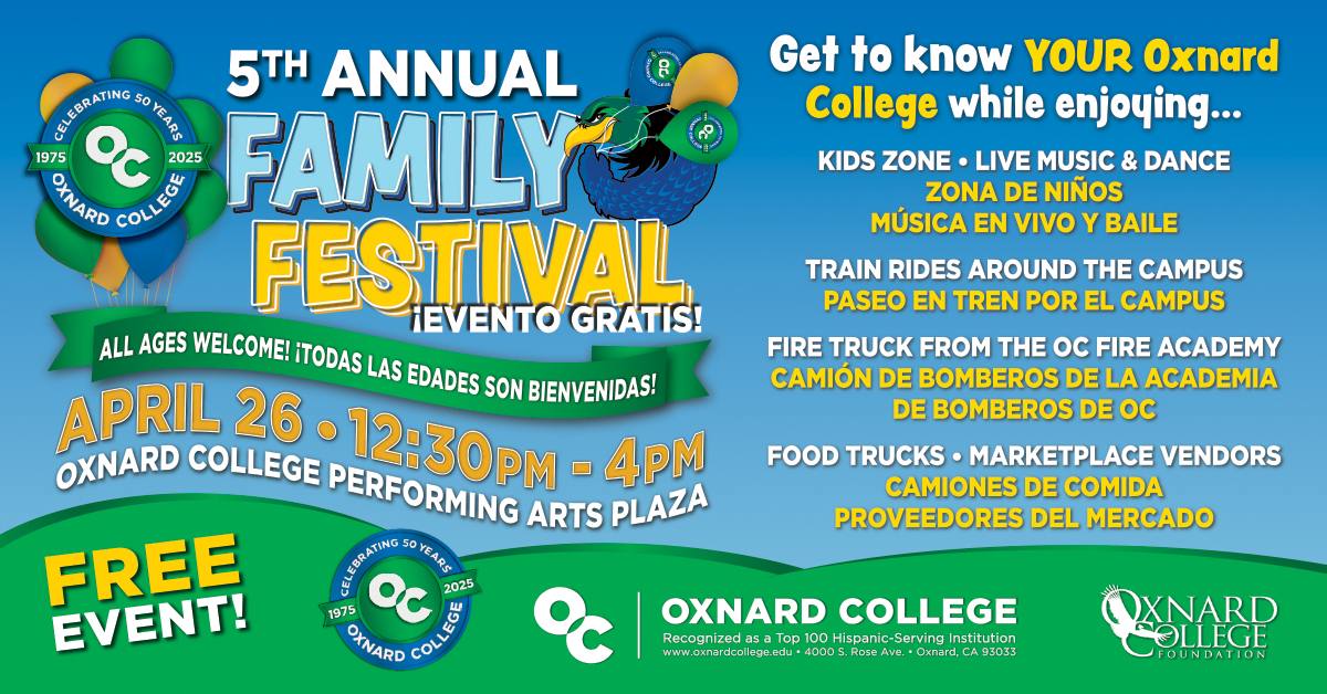 Oxnard College Family Festival4000 S Rose Ave. Oxnard, California 93033 learn more open in Google Maps Apr 26 Oxnard College Family Festival 4000 S Rose Ave. Oxnard, California 93033 (805) 678-5275