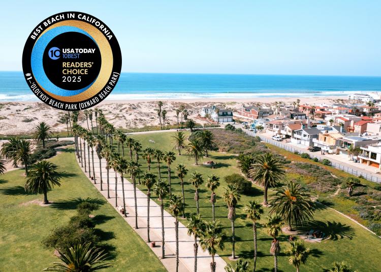 'olołkoy Beach Park, formerly known as Oxnard Beach Park, has been named the number one Best Beach on the West Coast by USA Today's 10Best in their 2023, 2024 and 2025 Readers' Choice Awards. The palm-studded coastal park features rolling lawns, volleyball courts, kids play area, skating & jogging paths as well as the Ed Hunt Rehab Point, a 900-foot accessible paved loop behind the beach.